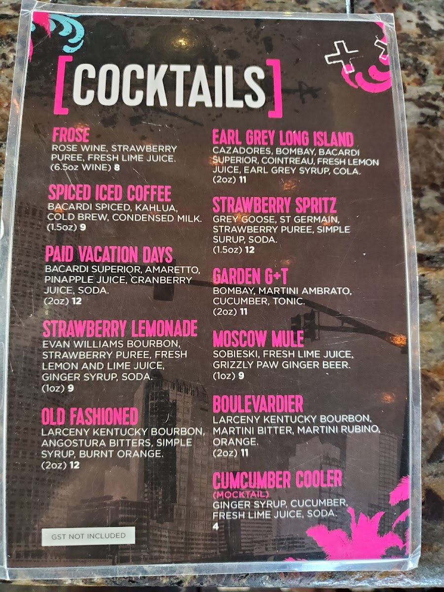Cool environment. Not too loud not too quiet. We had a great experience food was pretty good especially the pizza. Nice and flavourful Garlic wnd truffle oilour server was very welcoming. She was very professional. Checked on us often. Excellent job. However, One thing caught our eyes is we asked for for hot sauce and our server charged her 3 bucks for two hot sauce without telling us the price before. My apologies if I missed that on the menu. If it’s really not on the menu our server should have told us it’s 3 bucks for hot sauce Lol. Idk You’re paying 18 bucks for an average drink called “Paradise”and you have to pay for a condiment, that’s WILD . Again My bad if I missed the menu item price list. Other than that we loved it. Everything was pretty good. Cozy place Pretty good food. Kudos to the management