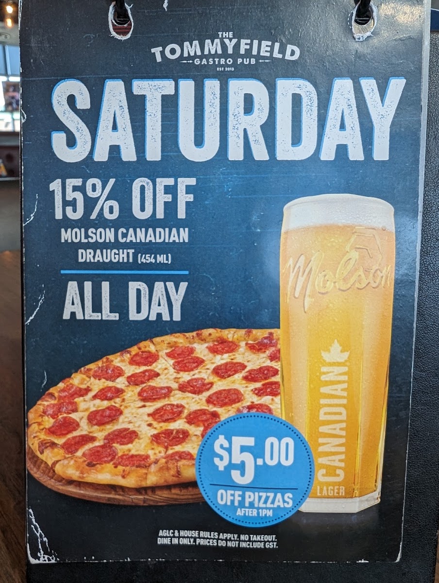 The Tommyfield Gastro Pub in Seton, Calgary, is a must-visit! It's no surprise this place is so popular—on my visit, it was bustling with people and nearly full. The atmosphere was lively, enhanced by great music that perfectly complemented the experience. I indulged in their American burger, which was incredibly delicious, and the crab dip was a garlic lover’s dream. The calamari was also fantastic, perfectly cooked and seasoned. To top it all off, I enjoyed a Molson Canadian Draught—truly a classic lager that hit the spot. Plus, they have a special 15% off every Saturday! And I can't forget to mention the washrooms, which are styled like red telephone cabinets—absolutely hilarious and a fun touch! Overall, I highly recommend The Tommyfield for a great night out.